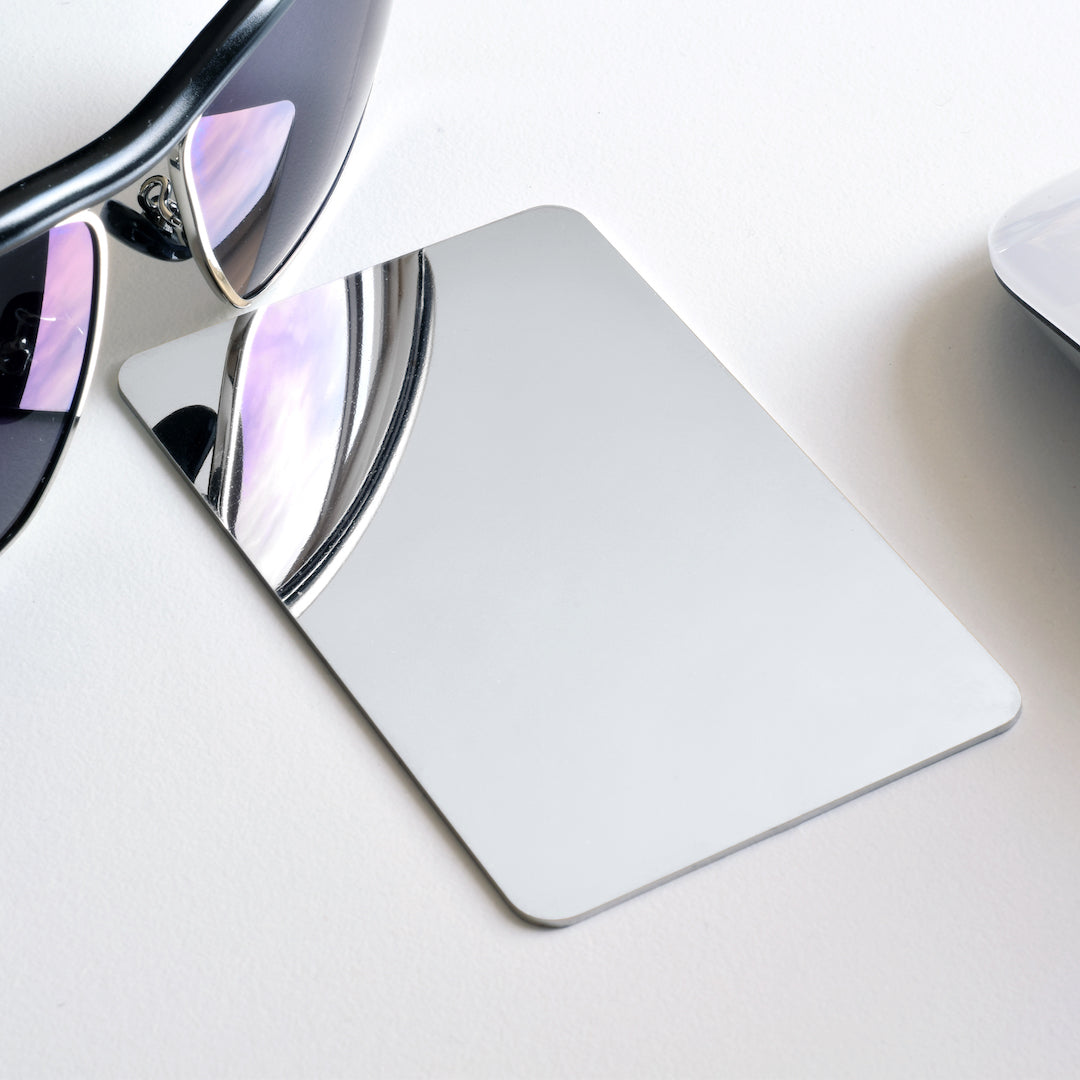Have you ever needed a quick checkup while you're out? Our solid steel mirror is the perfect solution! Our solid steel mirror is the size and shape of a credit card. It's lightweight and strong stainless steel. The perfect minimalist mirror for quick, discreet checkups.