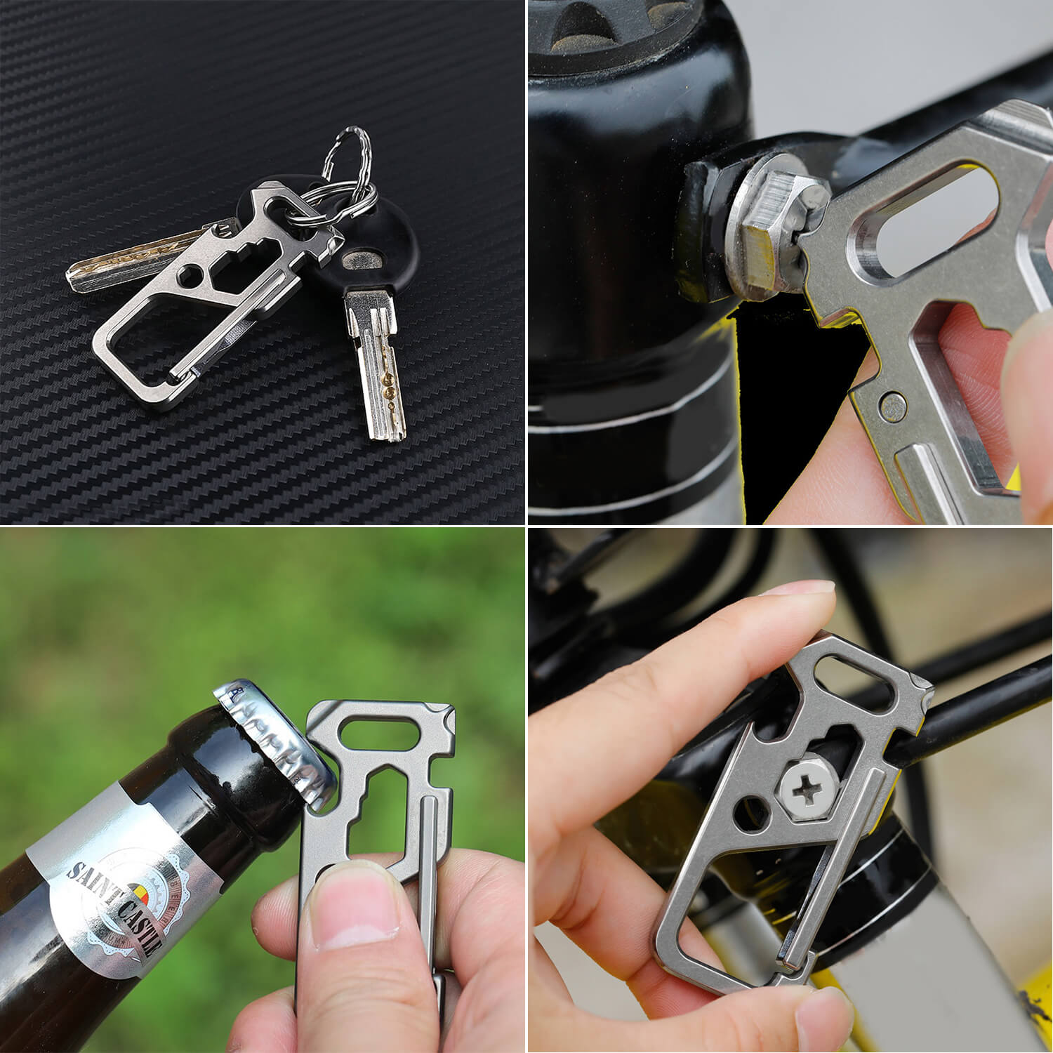 With 10 tools at your fingertips, the Polar ULTRA titanium carabiner is the ultimate multitool for everyday carry. It is more than just a simple clip. It offers 10 different functions, including as a keychain, bottle opener, can opener, flathead screwdriver, Phillips screwdriver, bicycle wrench, and multiple hex wrenches.